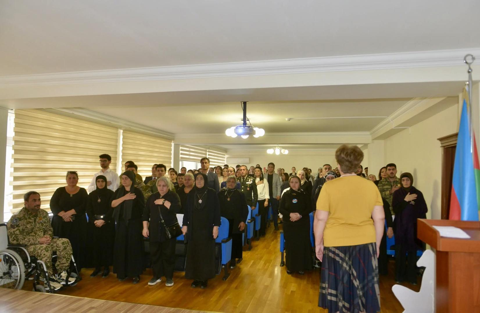 Zəfər Gününə həsr olunmuş mərasim Dövlət Himninin səsləndirilməsi və şəhidlərin xatirəsinin bir dəqiqəlik sükutla yad edilməsi ilə başlayıb. Daha sonra 44 günlük Vətən müharibəsinə həsr olunmuş videoçarx nümayiş etdirilib.